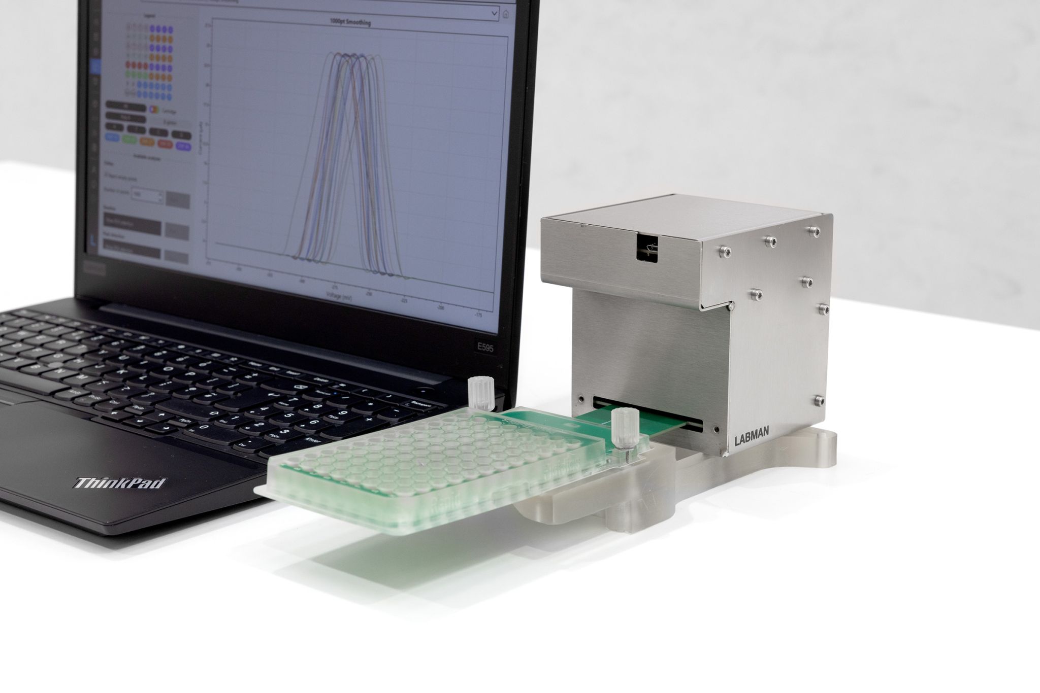 A recent proof-of-concept experiment has revealed exciting potential for high-throughput electrochemical analysis using a combination of Labman’s 64-channel potentiostat and a 3D-printed 96-well microfluidic platform with integrated PCB based electrodes developed by Rapid Fluidics. The findings suggest that electrochemical measurements could move into true parallel multi-well formats, accelerating applications from biosensing to materials testing.