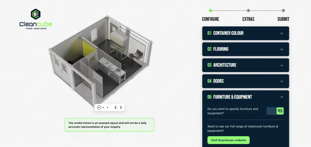 The East Anglian contamination control specialists will be able to capture the key ingredients for clients’ large-scale cleanroom container requirements in a stunning new configurator-style enquiry form